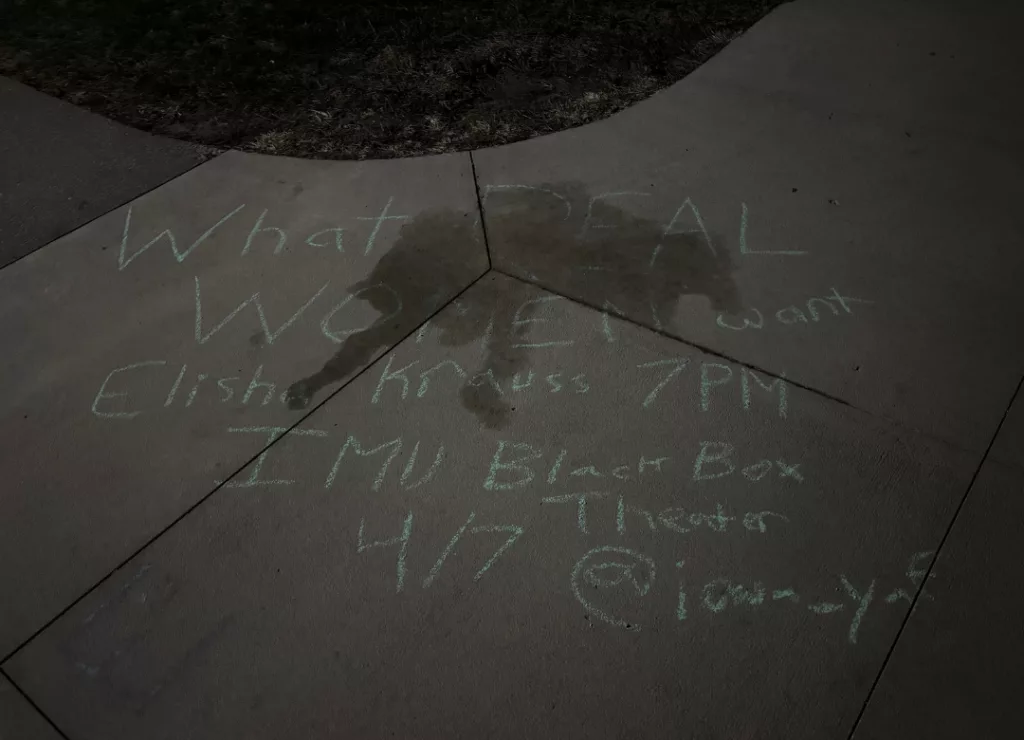 That’s despite recent vandalism reported by the UI chapter of Young Americans for Freedom over the last few days, including a banner promoting the event being ripped in half and someone spraying water on sidewalk chalk promoting the event. The group also says it has been the target of online harassment after it sent a campus-wide email promoting the event.