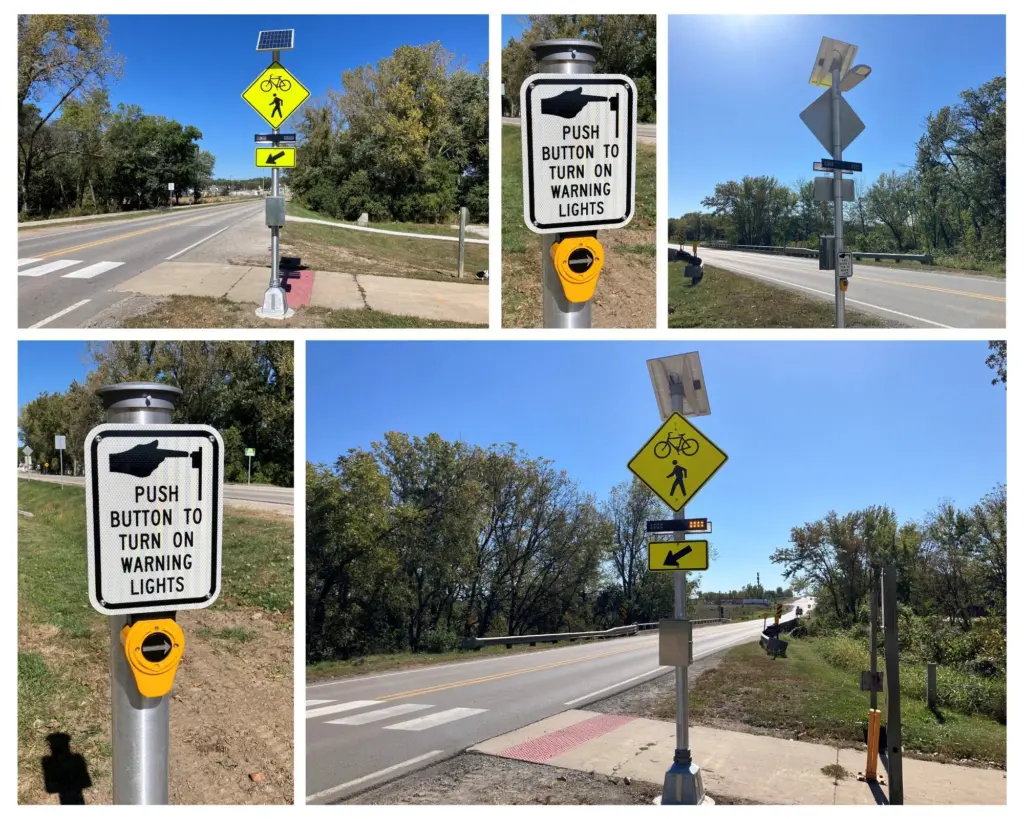 The devices have been installed at the trail crossing to improve pedestrian and driver safety.