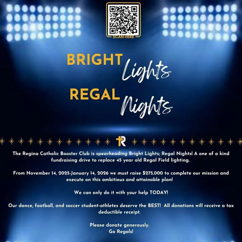 While the third-ranked Regina football program is preparing to play for its ninth state championship in the last 20 years, the team’s supporters are trying to upgrade antiquated lights on the school’s home field.