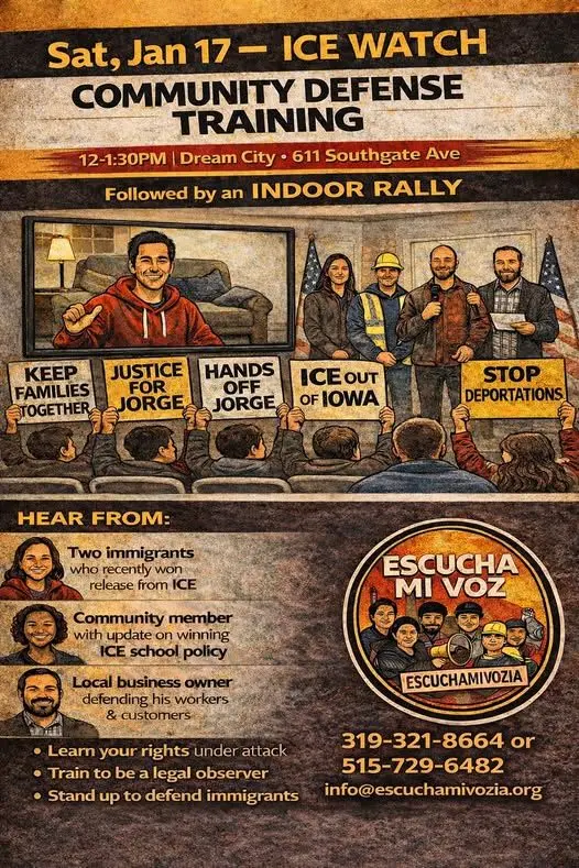 Attendees will hear from local residents who have been freed from the custody of Immigration and Customs Enforcement, or ICE. Community members and small business owners will be updated on the Catholic Worker’s 4th Amendment campaign and learn about their rights when confronted by ICE agents. Those in attendance can also learn how to train to be a legal observer.